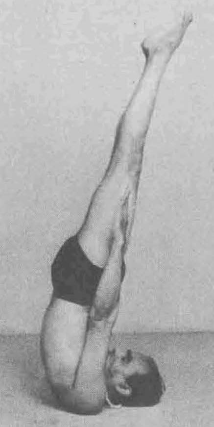 Il existe une variante de Sarvangasana qui consiste à rapprocher les mains des genoux, en maintenant les bras tendus. Le corps repose ainsi complètement sur les cervicales et les muscles des épaules.